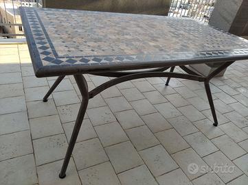 Tavolo da esterno in ferro con piano mosaico
