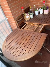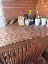 Vendo tavolo in teak, temuto sempre in balcone. Il tavolo é allungabile e passa da una dimensione di 150x90 a 180x90. Sono compresi nel prezzo le sedie. Per qualsiasi informazione o sltre foto non esitate a contattarmi.