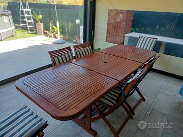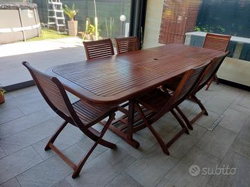 Vendo il bellissimo tavolo in Teak in foto completo di 6 sedie. Misure 1,80 x 1 metro, aperto 2,40 x 1 metro.