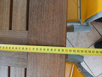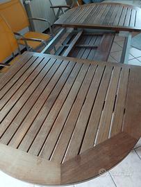 vendesi per inutilizzo tavolo da esterno ,le TERRAZZE tartaruga di pircher,struttura in alluminio ,piano in legno teak,con 4 sedie in alluminio e tessuto forato, misure in fotografie sia aperto che chiuso