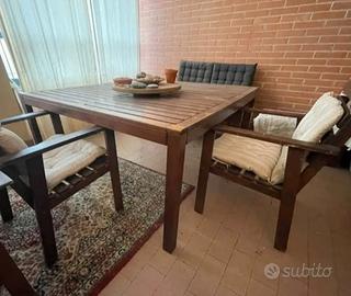 tavolo in acacia, ottimo stato , non è mai stato sotto alle intemperie, misura 140x140 ( no sedie ). Prezzo interessantissimo per la tipologia di tavolo € 100