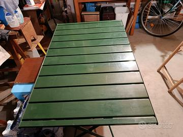 Vendo pratico set da giardino composto da tavolo pieghevole e 4 sedie coordinate. Il tavolo è in metallo verniciato verde con piano a listelli, solido e stabile, ideale per terrazzo, balcone o giardino. Struttura richiudibile per occupare poco spazio quando non in uso. Caratteristiche: •Tavolo pieghevole in metallo •Colore verde lucido •Struttura robusta e stabile •Facile da aprire e chiudere •Incluso set di 4 sedie abbinate (anch’esse pieghevoli)
