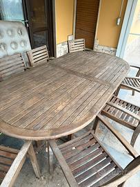 Tavolo da esterno con 8 poltrone in legno, ottima qualita e solidissimo , bisogna passare solo impregnante, ma