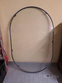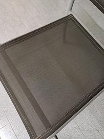 Tavolo in alluminio con ripiano in vetro per esterno. Dimensioni 150x100 cm. Non teme pioggia e intemperie. Completo di 6 sedie in alluminio con seduta e schienale in nylon. No manutenzione. Il tavolo è completo di gambe. NO SPEDIZIONE. Solo ritiro a mano.