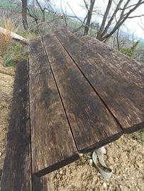 Tavolo da esterno, legno massello stile montagna, introvabile di questo tipo, in buone condizioni. Perfetto per case in campagna, bar o ristoranti. Struttura in ferro zingato molto robusta e da posizionare in battuti di cemento. Misure: Lunghezza 260 cm Larghezza tavolo 76 cm Altezza utile 100 cm Larghezza tot compreso panche 160 cm Stupendo, prezzo non trattabile, non dispongo di mezzo per trasporto. Si trova a Rosciano (Pe).