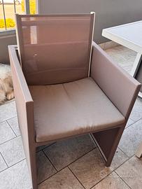 Tavolo da esterno in ferro robusto da 4/8 persone compreso di 4 sedie richiudilibili e posizionate sotto il tavolo come in foto. Piano del tavolo da un lato in ferro dall’altro in vetro.