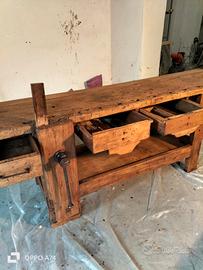 vendo tavolo da falegname antico, completamente restaurato, dotato di morse laterali con relativi cassetti. misure: 240x60x80 (h)