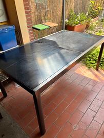 Tavolo estensibile fino a 240 chiuso 100x180 piano in vetro effetto marmo nero e telaio in alluminio