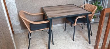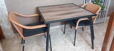 Tavolo da giardino in acciaio e legno + 2 sedie