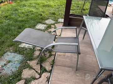 Bellissimo tavolo da giardino vetro e alluminio con porta ombrellone, con 4 comode poltroncine Misura 96x152 h70