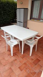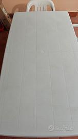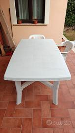 Tavolo da esterno giardino bianco e 4 sedie. 180/240 x 100 x 72 cm, polipropilene, solido, allunga centrale di 60 cm con sistema ad incastro. Adatto fino ad 8-10 sedute in modalità estesa. Perfetto per grande balcone, terrazza o giardino, resistente alle intemperie, tenuto sempre coperto con tovaglia. Zona Rebibbia piano terra