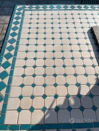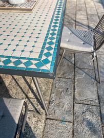 Vendesi tavolo da giardino con piano in piastrelline di cemento tenuto benissimo. Misure 180 lunghezza Larghezza 88 H73 Comprese 4 sedie Ritiro in loco ( no spedizione)