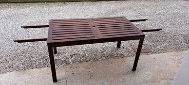 vendo un tavolo allungabile da giardino con quattro sedie pieghevoli in legno massiccio. È stato usato ovviamente per alcuni anni e quindi presenta segni di usura. In ogni caso è perfetto nelle sue funzioni e molto solido