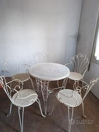 Tavolo da giardino con 4 sedie in ferro, mai utilizzato. Stile provenzale.
