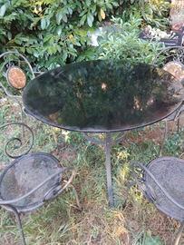 in ferro , piano in cristallo senza sedie