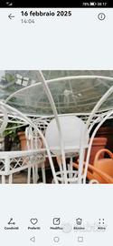 Vendo tavolo in ferro battuto con 4 sedie in ferro il piano del tavolo è rotondo e di vetro