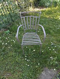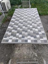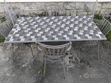 Tavolo da giardino. Struttura in ferro con pianale piastrellato. Completo di quattro sedie in ferro. Molto bello. Misure cm 80x150