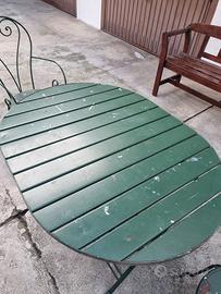 tavolo e sedie da giardino verdi in ferro battuto, in buone condizioni perfettamente utilizzabili