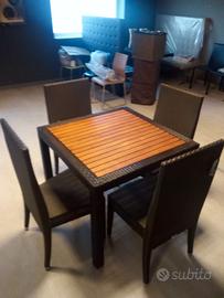 tavoli da giardino in rattan sintetico disponibile in bianco e brown con piano teak struttura alluminio,misure 90x90. Possibilità di avere sedie a parte solo brown disponibili.
