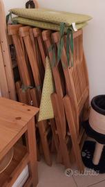 Tavolo in teak da 6 posti usato completo di 6 sedie coordinate Misure tavolo 150 lunghezza 100 larghezza e 75 altezza Si allunga diventando da 8 posti Ha un'imperfezione come da seconda foto Ritiro a Monza (MB)