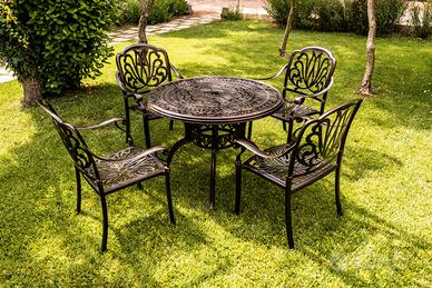 Il tavolo da giardino modello Cuore e' minuziosamente lavorato a mano con la