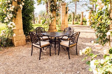 Il tavolo da giardino modello Primula e' minuziosamente lavorato a mano con la