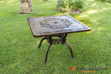 Tavolo da giardino modello Rosa realizzato in alluminio color bronzo, dal