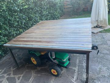 Parte in ferro e’ stata trattata con antiruggine trasparente mentre le assi sono state verniciate sempre con vernice trasparente