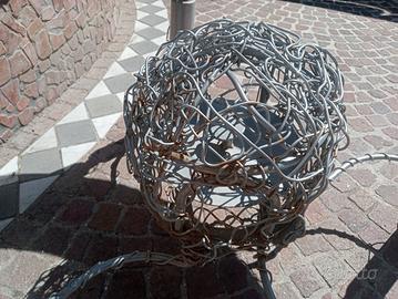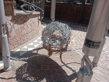 Tavolo con un nido per uccellini fatto in ferro battuto