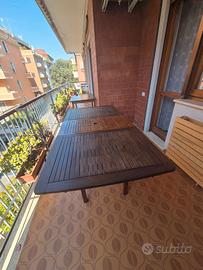 Tavolo molto grande da giardino legno massello allungabile. Lunghezza cm. 150 (200 con allungamento), larghezza cm. 97, altezza cm. 74.