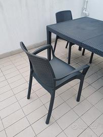 Tavolo da pranzo per giardino struttura e superficie in Resina grigio per 6 persone 150x90cm completo di 4 sedie come da foto