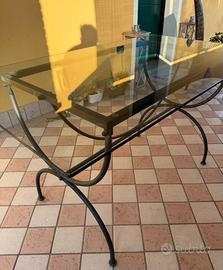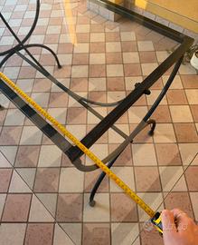 Tavolo da giardino con lastra di vetro e con struttura portante in ferro. Non presenta nessun tipo di danno evidente.