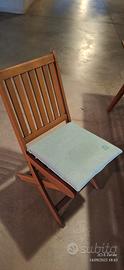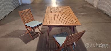 Tavolo per giardino/ veranda in legno simil teak verniciato noce chiaro, allungabile, con sei sedie complete di cuscini sfoderabili, misure cm 180+50x100