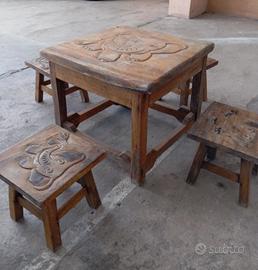 Vendo tavolo in legno massiccio per bambini con 4 sgabelli sempre in legno massiccio con disegni di un elefantentino bellissimo e utilissimo per merende dei bambini per piccoli giochi per fare i compiti anche all'aperto.. vendo per inutilizzo.. misure del tavolo 50x50 cm altezza 44cm misure sgabelli 25x25cm altezza 20 cm..per informazioni 3475207614 Daniele