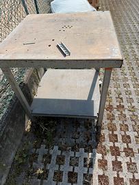 Tavolo da Lavoro con ruote funzionanti, due ripiani misure come da foto, struttura in ferro, molto resistente, prezzo trattabile