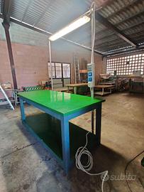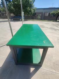Tavolo da lavoro molto robusto, in legno e verniciato con smalto anti usura e con ripiano sottostante.