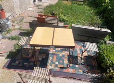 Tavolo da picnic portatile con due sgabelli e due sedie. Mai usato.