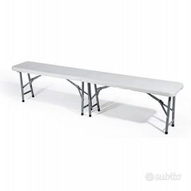 2 Panche pieghevoli con struttura in acciaio verniciato 22 mm e piano in plastica HDPE.