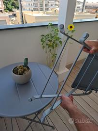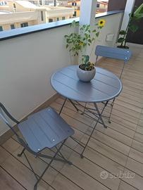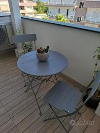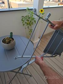 Vendo tavolo e 2 sedie pieghevoli, da esterno colore grigio chiaro come da foto. Vendo per scarso utilizzo e in ottime condizioni come si evince dai gommini sotto i piedi delle sedie.
