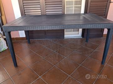 bellissimo tavolo fisso 160x90 con intreccio sul basamento tutto grafite polipropilene e 6 sedie robuste