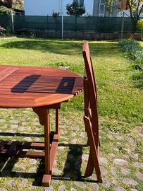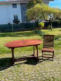 Vendo tavolo ovale allungabile e 8 sedie ripieghevoli da giardino in teak come nuovo. Marca Le terrazze di Pircher. Utilizzato poco e sempre al coperto. E’ un vero affare!!! Misura tavolo chiuso cm 149x 100; tavolo allungato cm 199x 100. Ritiro a cura dell’acquirente.