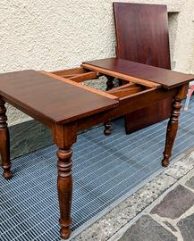 Tavolo Arte povera a plancia doppia in ciliegio massello caratterizzato da importante gamba tornita; particolarmente sano, solido, massiccio e ben conservato.