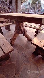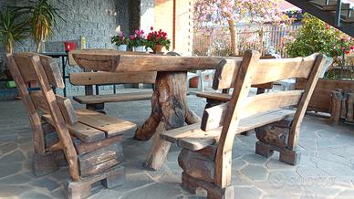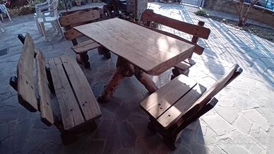 TAVOLO E PANCHE DA GIARDINO IN LEGNO MASSICCIO