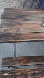 vendesi tavolo da giardino più 2 panche. tavolo misure 2,40x1,00m spessore 4cm con struttura in ferro panche misure 2,40m x 35cm. angoli arrotondati per protezione bambini. ritiro in sede. no perditempo.