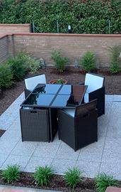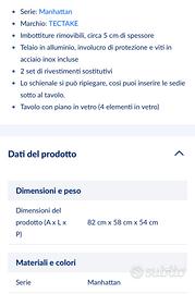 Set da giardino TECTAKE in rattan, alluminio e vetro temperato (4elementi) composto da tavolino, 4 poltroncine e 4 sgabelli. Cuscini sfoderabili e lavabili in lavatrice.