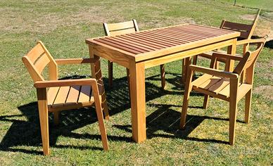 Vendo per inutilizzo tavolo in teak e 4 poltroncine mai usato prodotto di alta gamma e qualità superiore ( no ikea o prodotti da briko )caratteristiche in foto tavolo 250 euro e poltroncine 50 euro caduna. Tutto insieme tavolo e 4 poltroncine 400 euro. Occasione unica per veri intenditori. Astenersi perditempo e sognatori. Non effettuo spedizione.