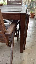 tavolo in legno con 4 sedie adatto a terrazzi e giardini. dimensioni: altezza 73 cm; larghezza 78 cm, lunghezza 144 con la possibilità di ampliamento su entrambi i lati di 60 cm per parte