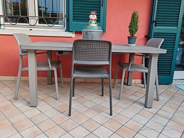 Tavolo da esterno allungabile da 160x90 fino a 220x100 più 4 sedie colorate stesso materiale del tavolo