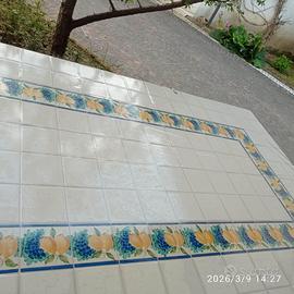 Tavolo e sedie da esterno 6 Sedie in ferro verniciate grigio chiaro 1 tavolo 100x200 decorate con piastrelle di vietri fatte a mano 10x10 Prelievo a vostro carico