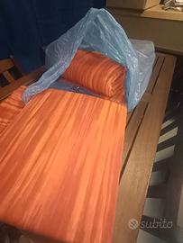 in legno di ebano tavolo 6 posti con panca e due sedie tipo poltrone con tovaglia abbinata ai cuscini sgoderlabili fatti su misura per entrambi.